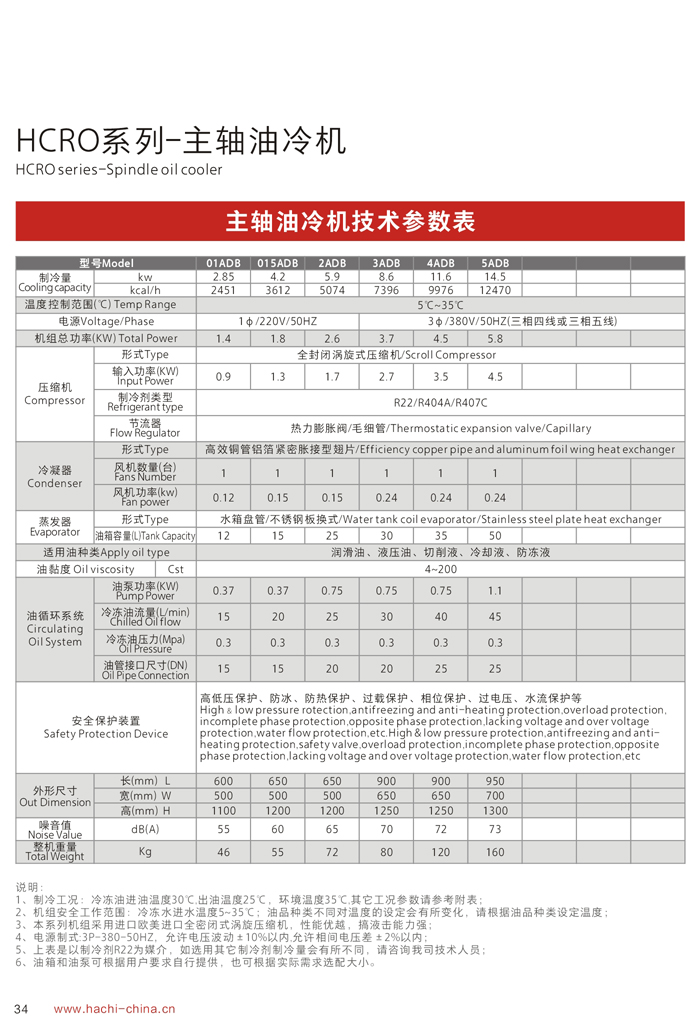 1、制冷能力是在環(huán)境溫度35℃,進(jìn)油溫度35℃,出油溫度30℃,油品為ISO VG32條件下測(cè)得。 2、用戶在選擇油冷機(jī)時(shí),必須選擇油液需控制的溫度范圍(1)18℃-25℃ (2)25℃-35℃ (3)35℃-45℃  (4)45℃以上。本公司推薦液壓油合理的溫度控制范圍為35℃-45℃.