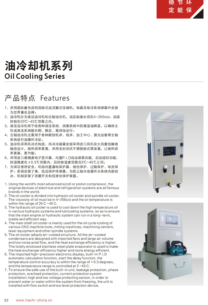 1、制冷能力是在環(huán)境溫度35℃,進(jìn)油溫度35℃,出油溫度30℃,油品為ISO VG32條件下測(cè)得。 2、用戶在選擇油冷機(jī)時(shí),必須選擇油液需控制的溫度范圍(1)18℃-25℃ (2)25℃-35℃ (3)35℃-45℃